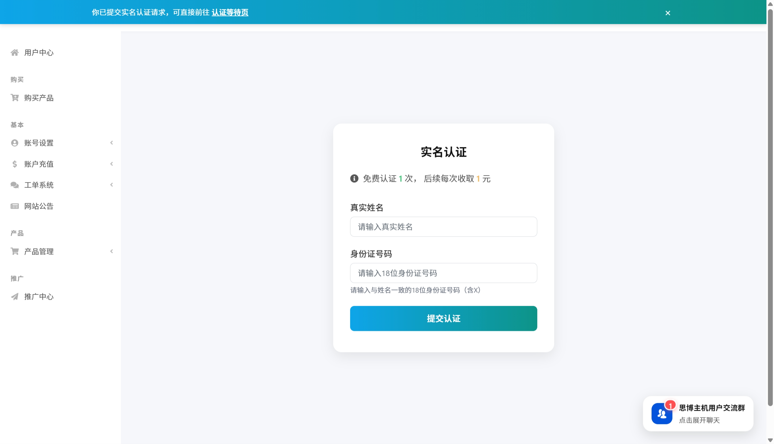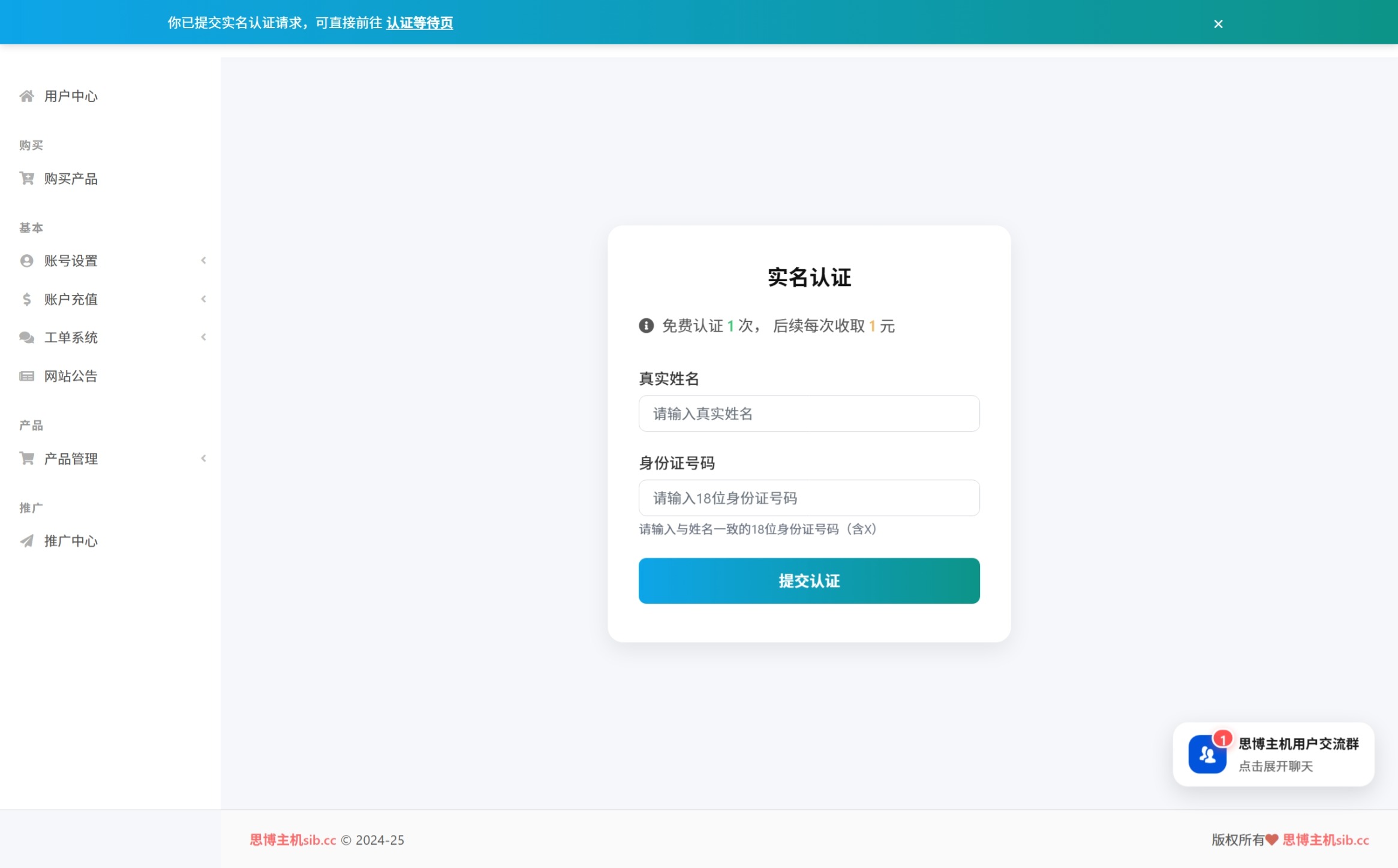 - 后台可设置「下单前强制实名」或「自愿认证」两种模式